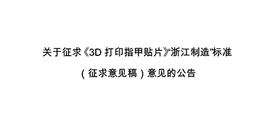 各有關(guān)單位及個人: 參照《浙江省標(biāo)準(zhǔn)化條例》的有關(guān)要求,現(xiàn)就浙江新空氣工藝品有限公司起草的《3D打印指甲貼片》“浙...